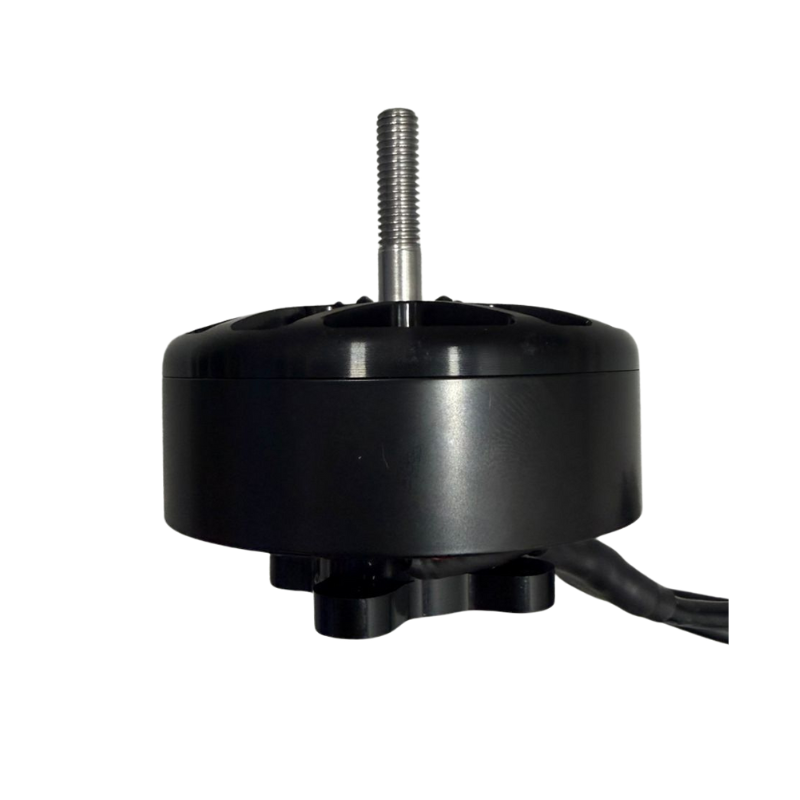 The motor features a 12N14P configuration, thick 13AWG wires with a length of 15cm, and a 6mm shaft for the propellers. At full power, the motor delivers a thrust of over 6kg.