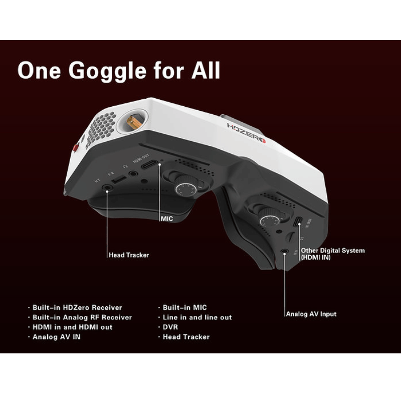- All the video input and output you need – one goggle for digital, analog, and HDMI video