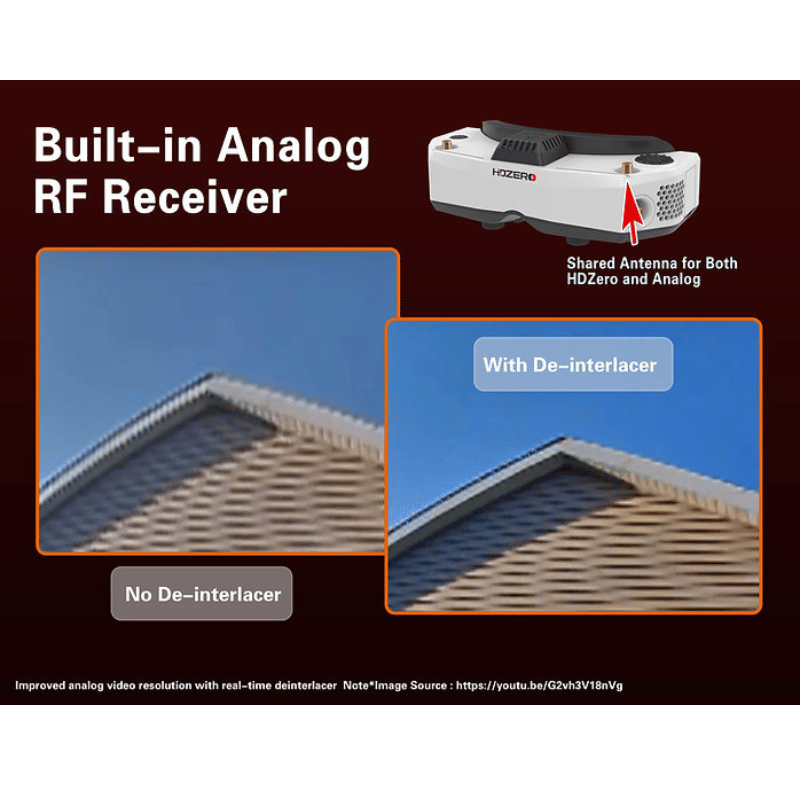 - Built-in analog receiver sharing antenna with HDZero receiver