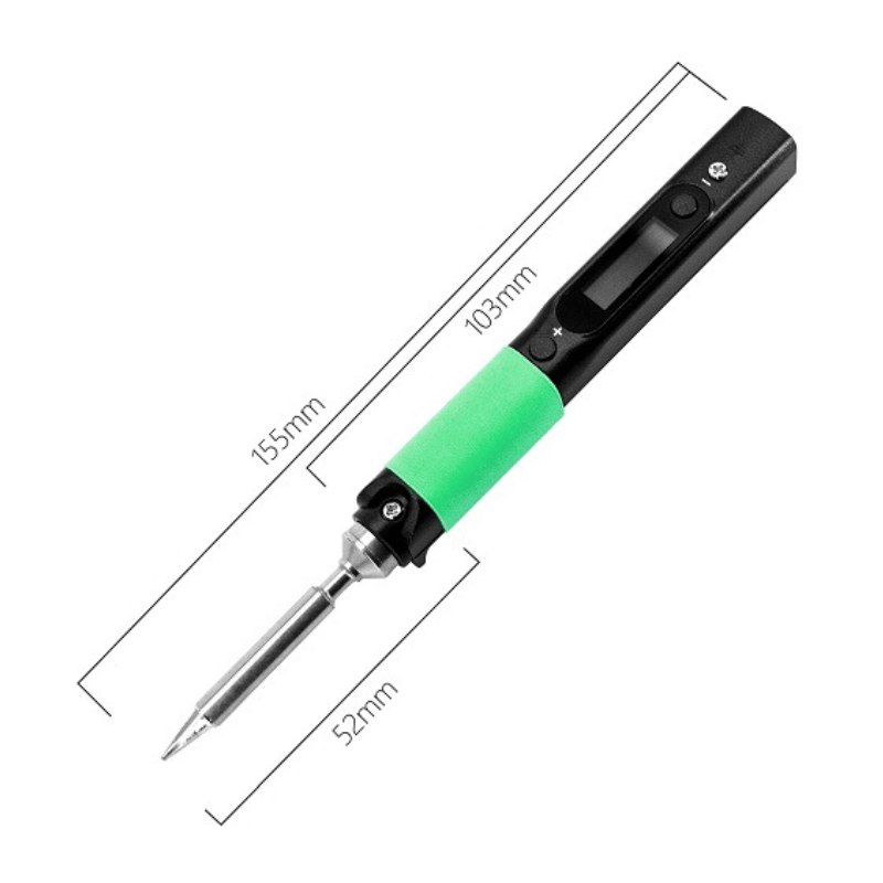 - Adjustable soldering tip temperature which can be set between 100° C and 400° C using the adjustment buttons and an easy-to-read OLED display.