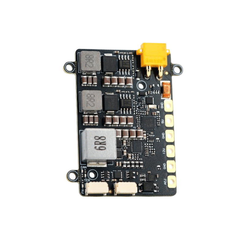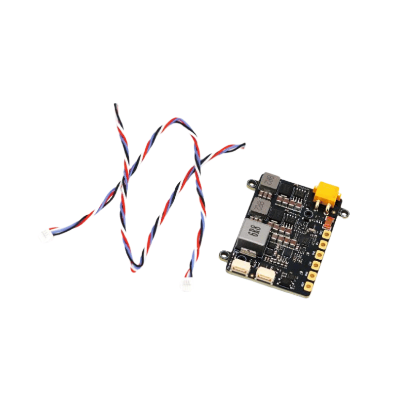The TBS Lucid DroneCAN 20A Power Supply is a workhorse that will sit at the center of your drone to supply it with stable, filtered and reliable power. With up to 12S power input, it has plenty of support for large batteries. And 3 independent step-down voltage regulators, the module offers flexible output options with continuous current support up to 20A, while being one of the most lightweight power supplies around.